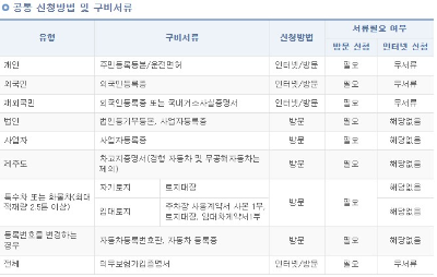 | 양수인 및 양도인(함께 방문) | 보험가입증명서(필수 아님) 신분증 |